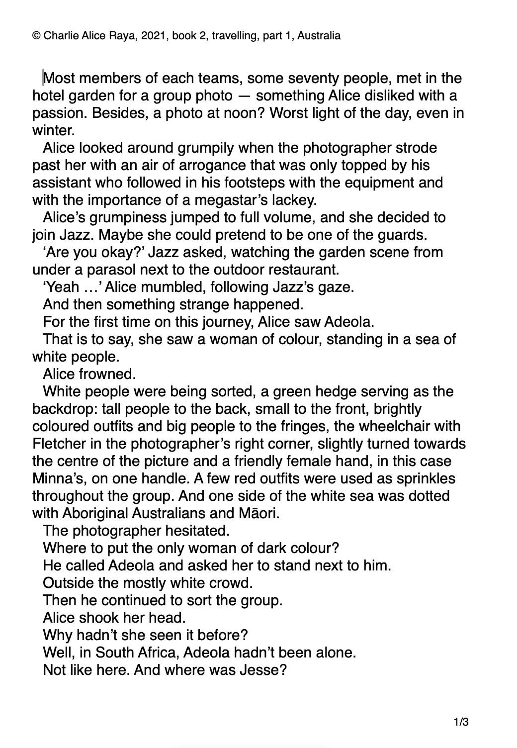 And then there are the unexpected lessons. For me the most amazing example is still that of Adeola, a character who started as a name I liked, who became a main character in the process of writing book 2, and who taught me that racism is exactly the f-up, enough people have been pointing out. The following is a key scene where a penny or two finally dropped. And it did so while I was in the story.