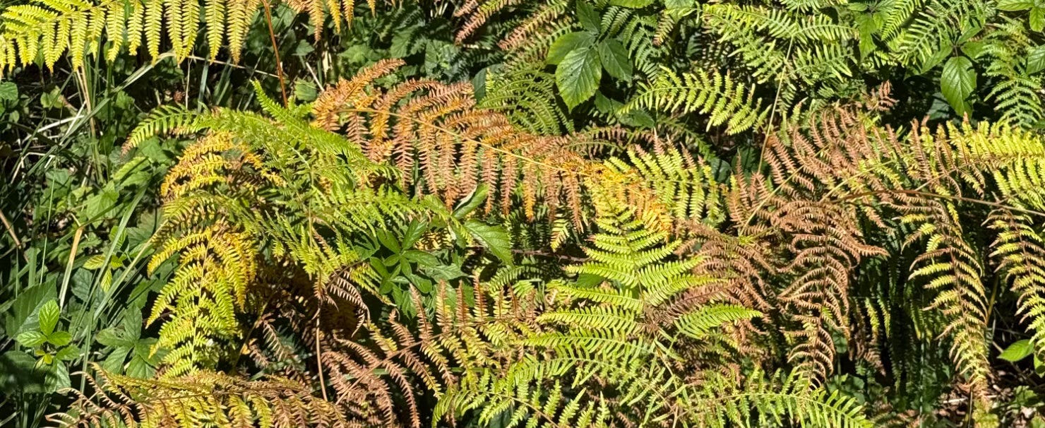 Some time later, I read an article** about a temperate rainforest where bracken (fern) keeps other plants from thriving, and the interviewee said: ‘I noticed that, where I cut access paths through the bracken, wild self-seeded trees quickly took advantage and corridors of saplings began to spring up (…) once trees grow beyond the chest-high bracken tops, they’re able to carry on by themselves, and will ultimately shade the fern out, returning it to its natural niche as just another component of the ecosystem.’