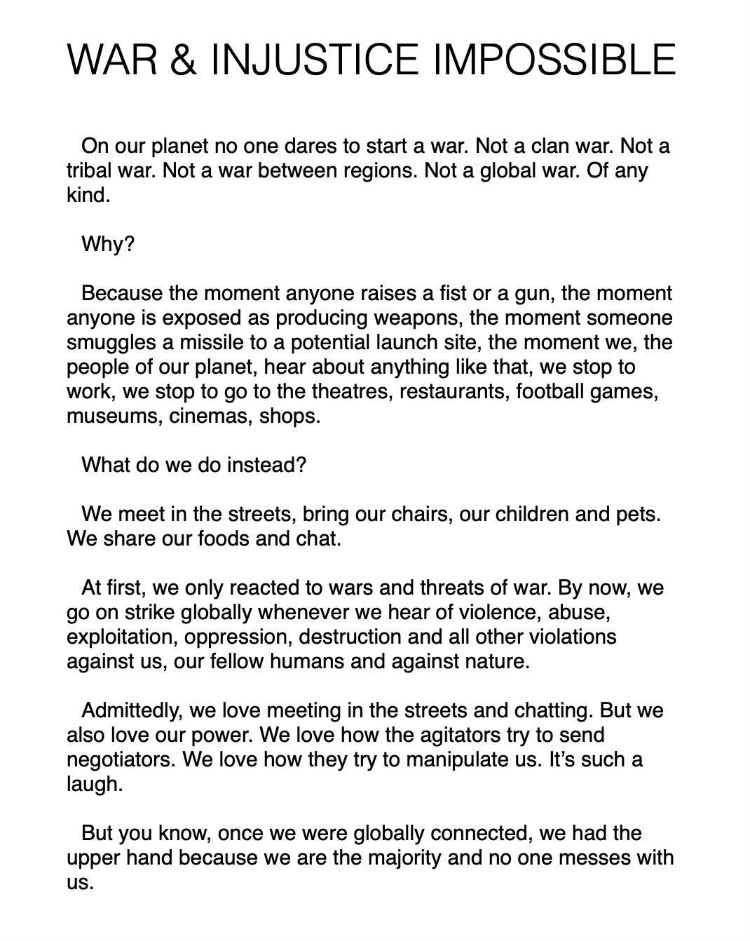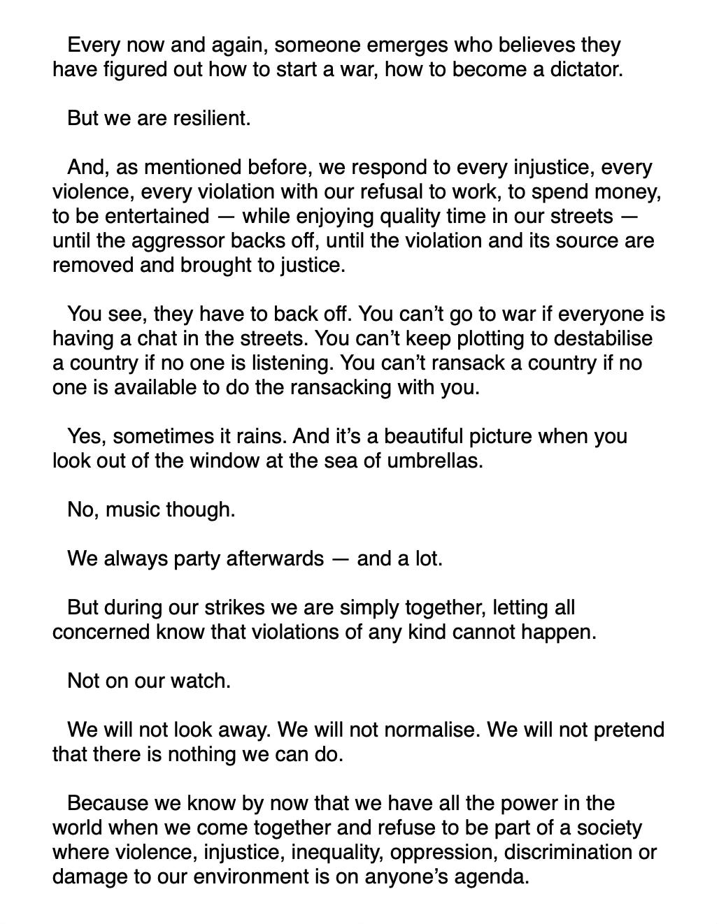 My favourite idea is that of a general strike which I used in a MAKE IT HAPPEN STORY, in May 2025.